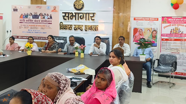नारी शक्ति वंदन सम्मेलन के कार्यक्रम का सजीव प्रसारण विकास खंड हाथरस में किया गया |