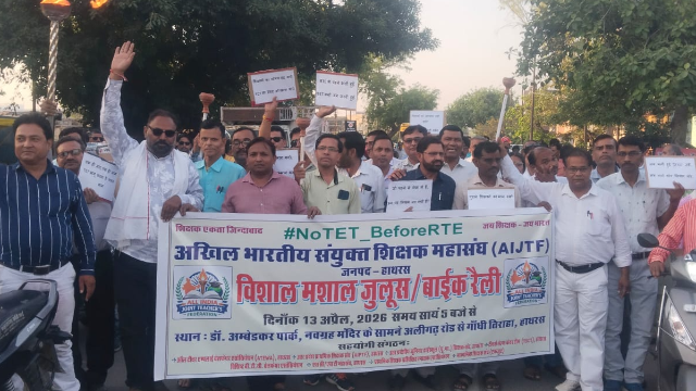 शिक्षकों ने निकाला मशाल जुलूस सेवारत शिक्षकों के लिए टीईटी अनिवार्यता का विरोध |