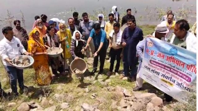 मध्य प्रदेश जन अभियान परिषद के सामाजिक कार्यकर्ताओं द्वारा गांव गांव में चलाया जा रहा है जल संचयन अभियान