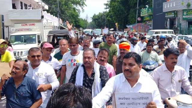 सभी सर्राफा एसोसिएशन ने हज़रतगंज जीपीओ गाँधी प्रतिमा पर एकत्रित होकर विरोध दर्ज कराया
