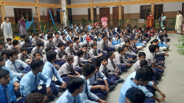 भारत विकास परिषद सृजन शाखा द्वारा सार्थक इण्टरनेशनल स्कूल में निःशुल्क पाठ्य पुस्तक एवं स्कूल बैग का वितरण।