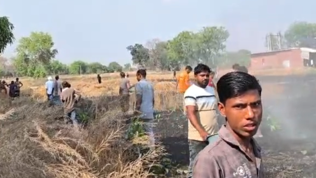 शॉर्ट सर्किट से भड़की आग में तीन बीघा गेहूं की फसल राख