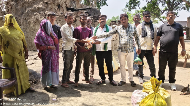 अग्निकांड पीड़ित परिवार को भारतीय किसान यूनियन टिकैत गुट ने दी राहत सामग्री