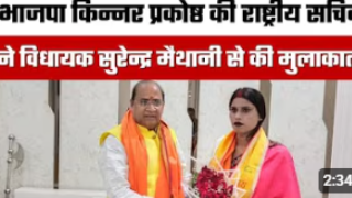 भाजपा किन्नर प्रकोष्ठ की राष्ट्रीय सचिव ने विधायक सुरेन्द्र मैथानी से शिष्टाचार भेंट की।